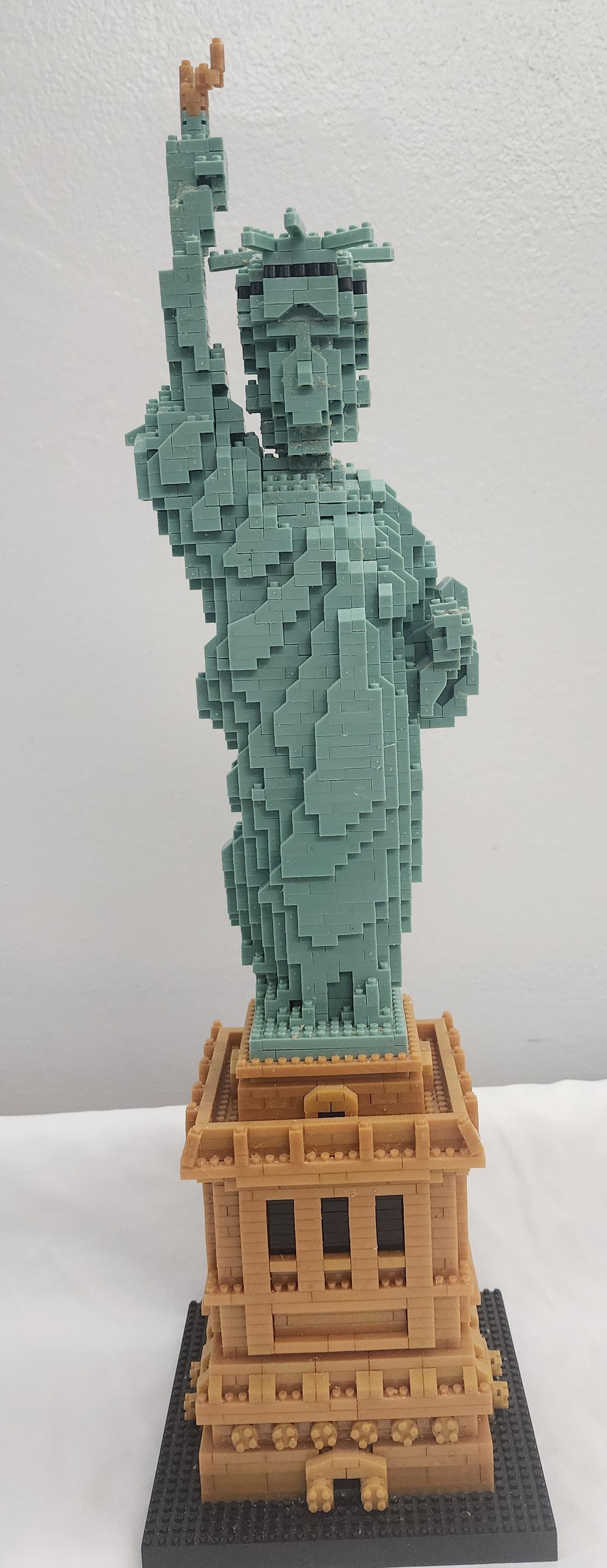 Lady Liberty made out of glue and micro-blocks and a lot of patience!