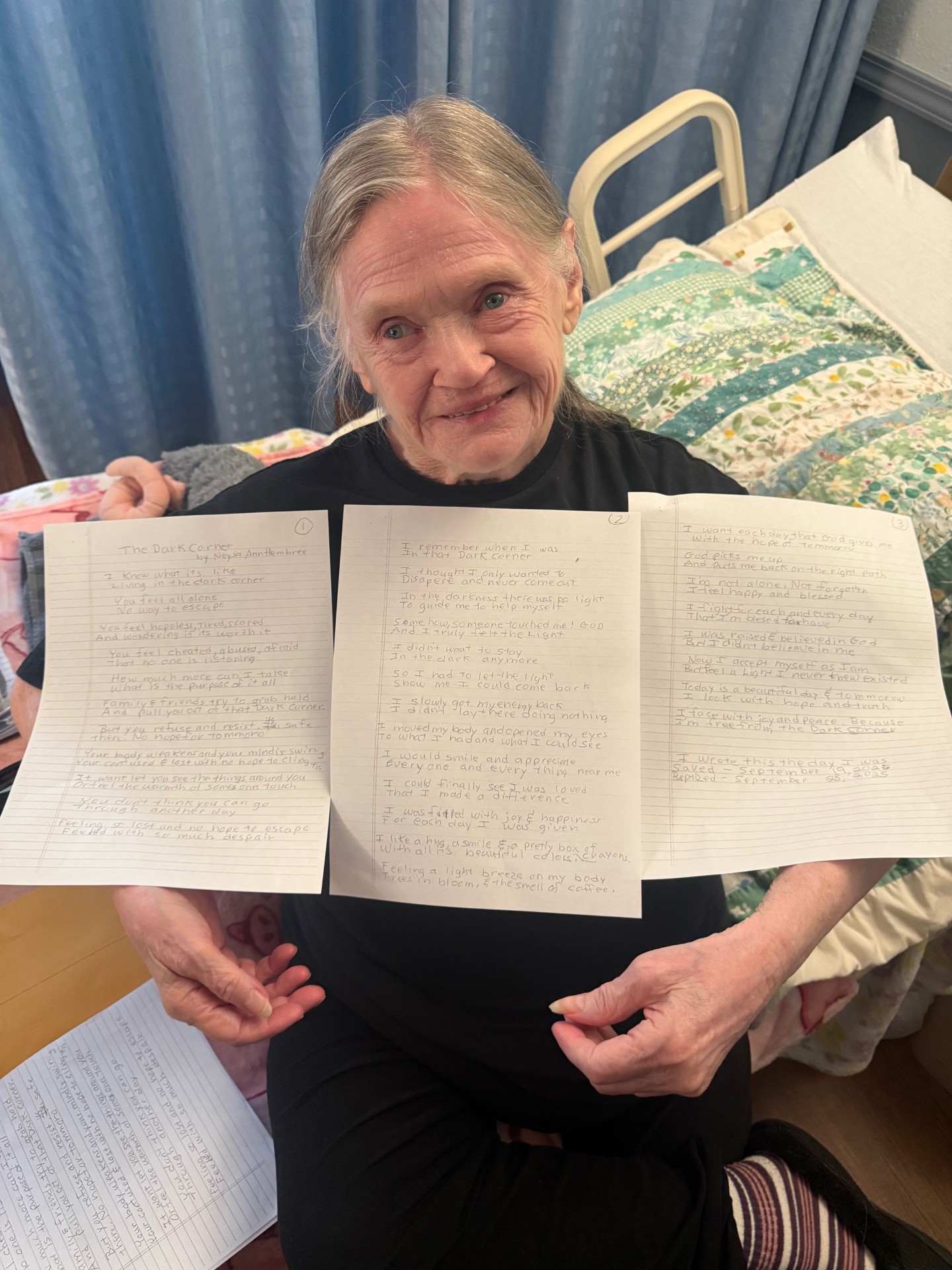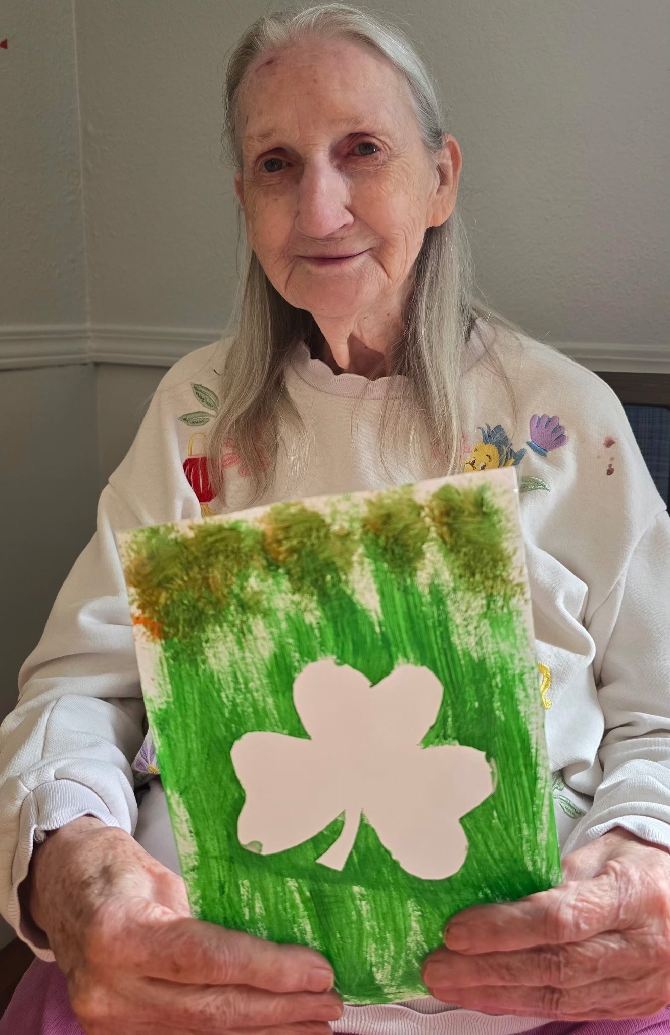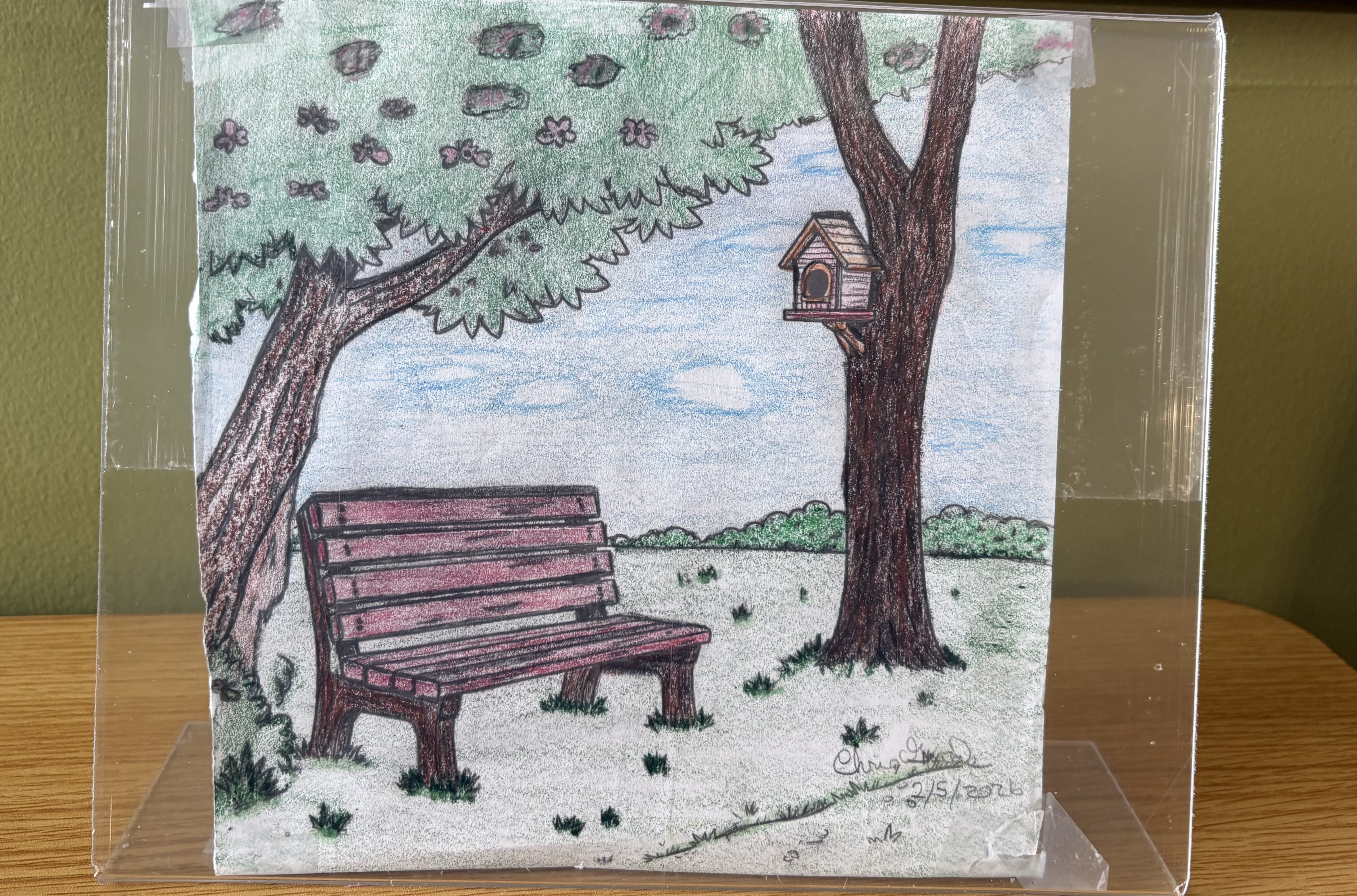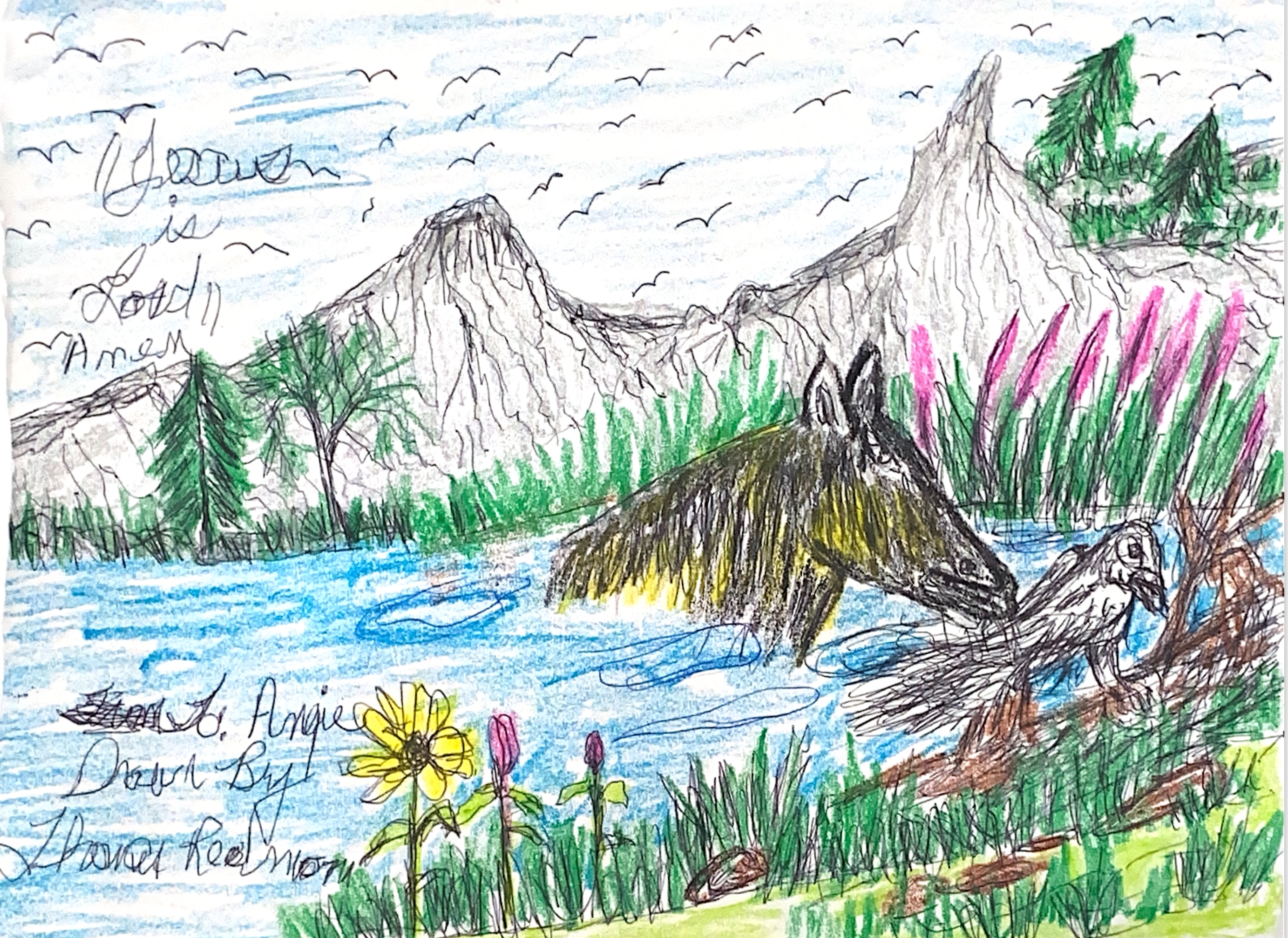 Lynne was inspired to draw a picture of the dog that her CNA brought to see her. The dog's name is Princess and Lynne enjoys her visits so much. The CNA was so pleased with the drawing that looks just like her Princess.