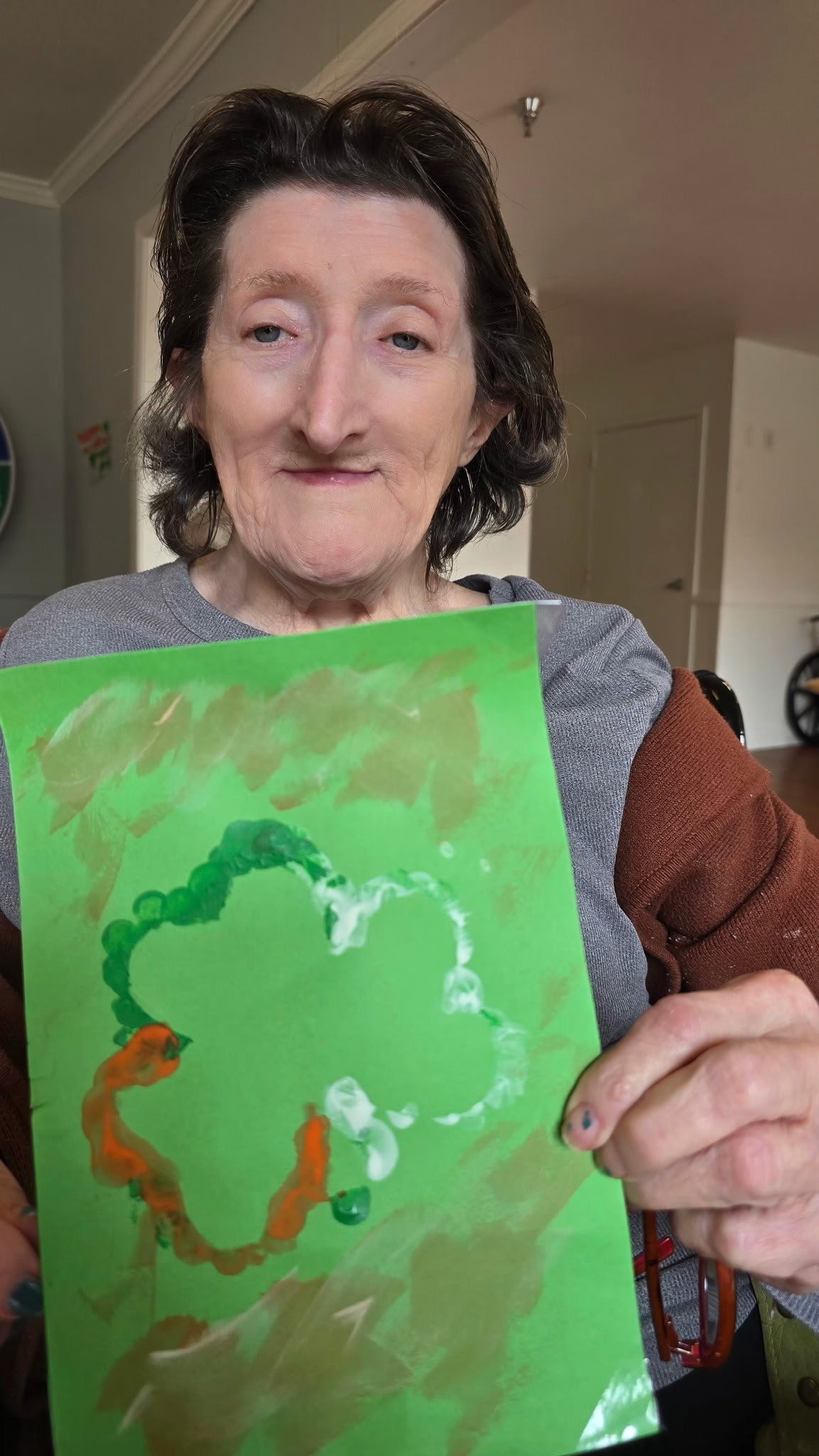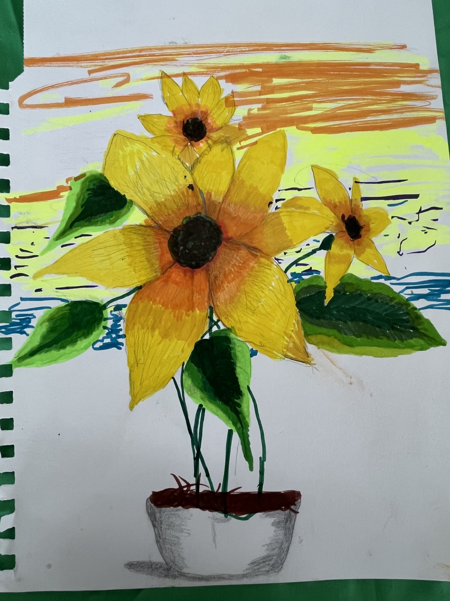The materials I used to make my Mothers Flowers artwork is celery stocks, paint, paint brush and paper. The subject of my painting is Flowers. What gave me inspiration to make this painting is the arts and crafts we dop here at our facility. The message behind this painting is that no matter what materials you have you can always paint with anything!